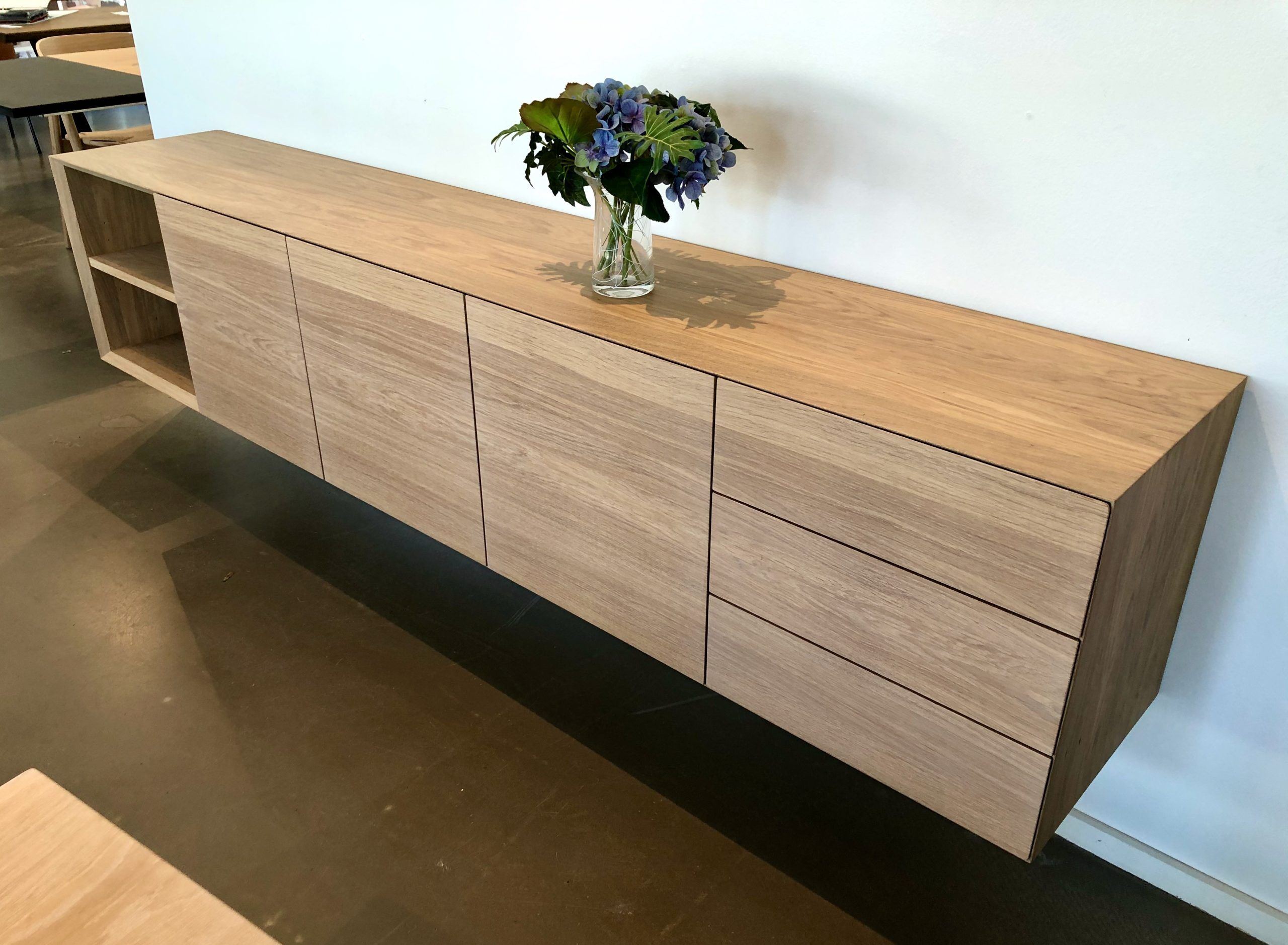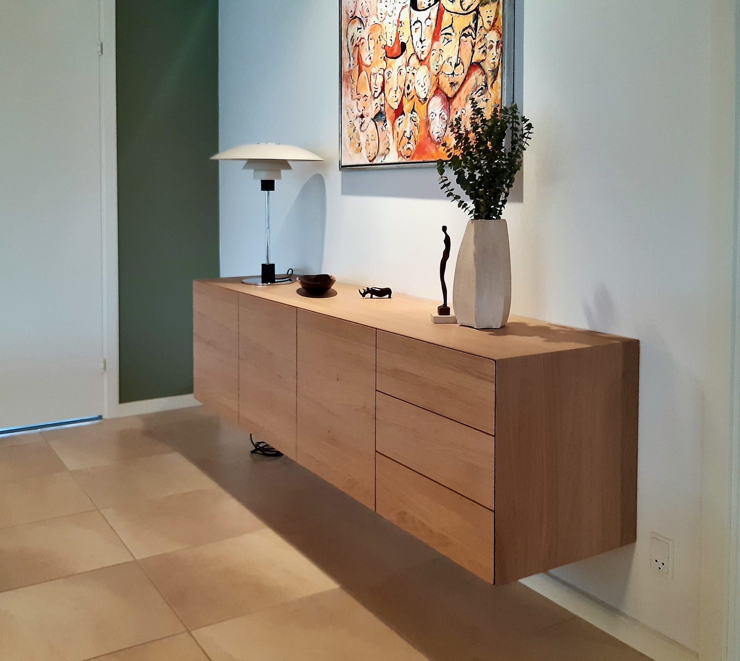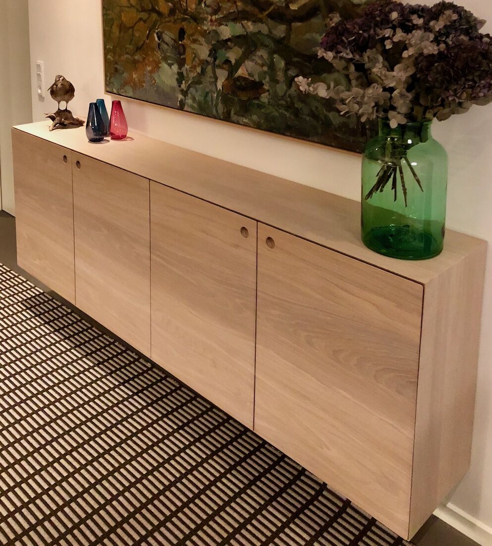 Alle vores skænke bliver leveret med mulighed for ophæng. Ønsker du at få monteret ben på skænken er dette også en mulighed. Hvis du en dag ønsker at indrette anderledes eller flytter, vil en skænk på ben også kunne væghænges når benene er afmonteret.